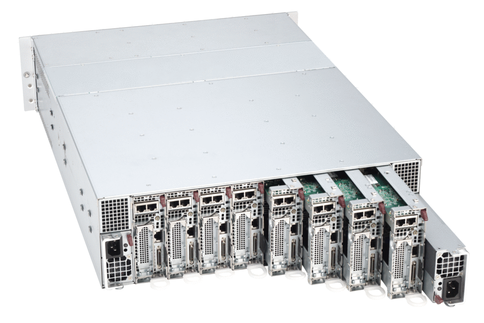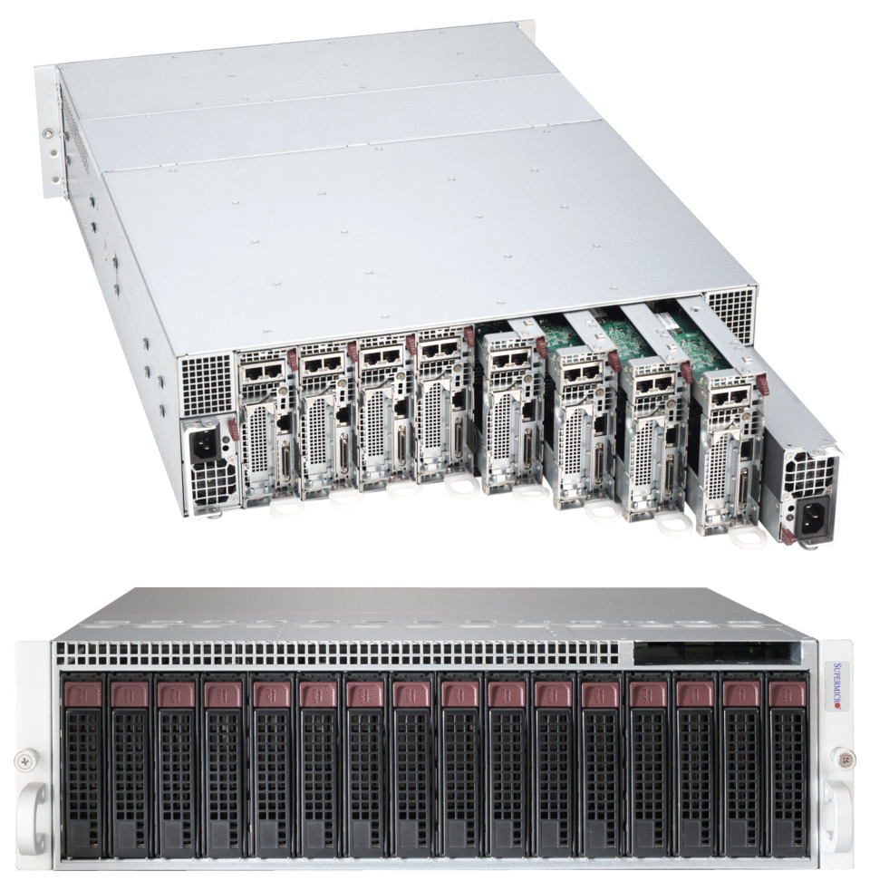 第7世代 Intel® Xeon® processor E3-1200 v6を搭載したノードを1筐体につき8台搭載したシングルソケットマルチノード3Uサーバです。それぞれのノードは1台のサーバとしての機能を完全に備えており3Uサイズのサーバ1台で合計8台分のサーバ機能を提供します。