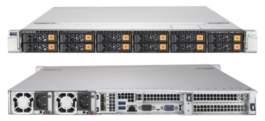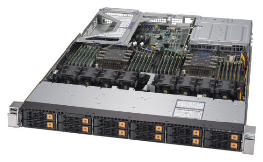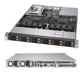 「Cascade Lake」世代 Intel® Xeon®スケーラブル・プロセッサ2基をSuperMicro社製マザーボードに搭載したデュアルソケット1Uサーバです。前面にホットスワップ対応2.5インチNVMe/SATAハイブリッドドライブベイを12基搭載し、最大2TBのECC対応DDR4メモリを搭載可能です。Intel VROC RAIDを利用することによりすべてのドライブベイを利用した最大12基のNVMe RAIDアレイの構成が可能です。10GBase-T ネットワークインターフェースをそれぞれ2ポート搭載しています。
