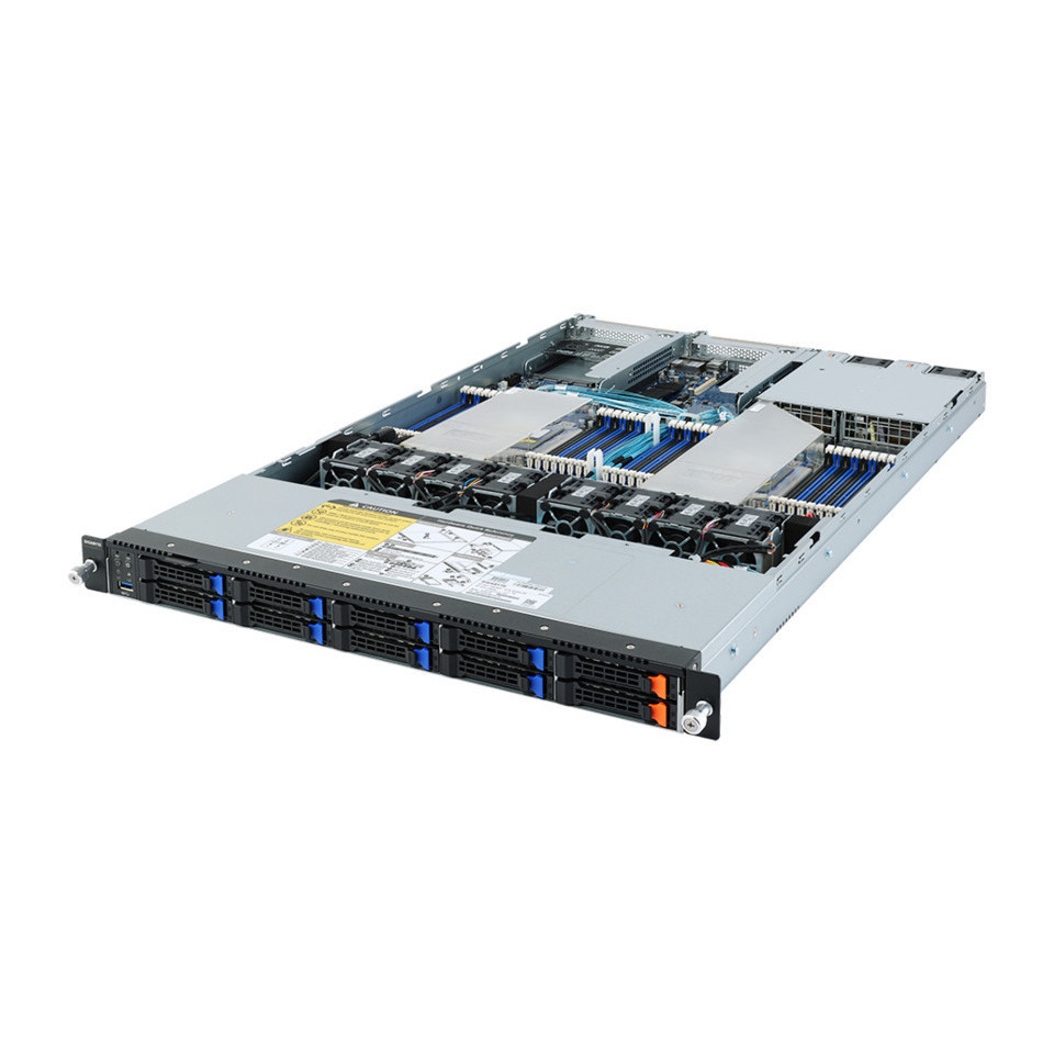 2つの10GBase-T LANを搭載、最新のデータセンターやアプリケーションの通信性能要求に対応します。最大8台のSATA SSDおよび最大2台 U.2 NVMe SSDをを前面のドライブベイに搭載可能です。各ドライブベイはホットスワップ対応で、システムが稼働している状態でのSATA/NVMeドライブの交換が可能です。SATA/SAS SSDドライブによるハードウェアRAIDカードを利用したストレージ環境の構築も可能です.