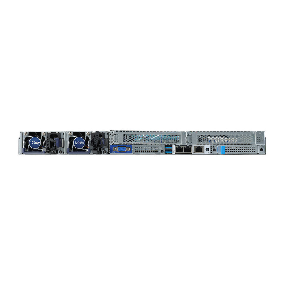ECC対応 DDR4メモリを搭載。メモリのエラー訂正よび検知機能によりサーバーとして信頼性のある環境を実現します。2つの1200W電源による冗長化電源を搭載。万一の電源の故障に対応します。1200Wの容量により片方の電源が故障した状態でも十分にシステムへの電力の供給が可能です。またシステムが稼働している状態での故障電源ユニットの交換が可能です。