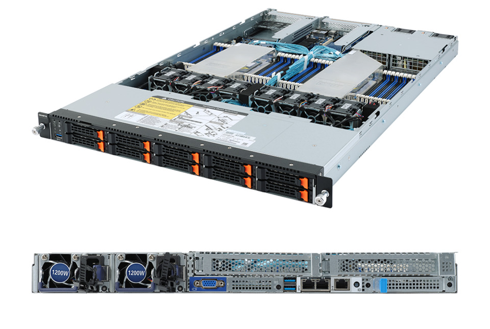 ECC対応 DDR4メモリを搭載。メモリのエラー訂正よび検知機能によりサーバーとして信頼性のある環境を実現します。2つの1200W電源による冗長化電源を搭載。万一の電源の故障に対応します。1200Wの容量により片方の電源が故障した状態でも十分にシステムへの電力の供給が可能です。またシステムが稼働している状態での故障電源ユニットの交換が可能です。