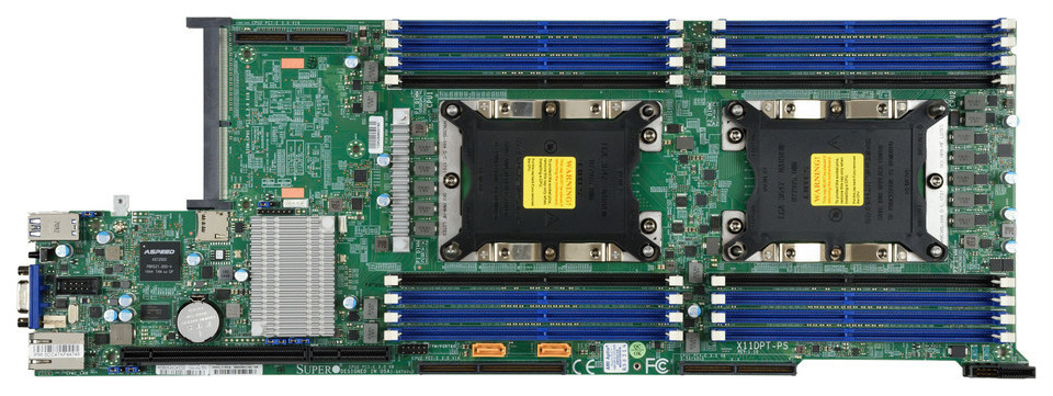 第2世代 Intel Xeon Scalableプロセッサを2基搭載したデュアルソケットツインサーバです。デュアルプロセッサにより48GHz(2.4GHz x 20コア)から92.4GHz(2.1Hz x 22コア)までのCPU性能をサポートします。コア単体ではターボブースト機能により最大4.0GHzでの動作が可能です。シングルスレッド、マルチスレッドを問わず様々なタイプのワークロードを高速に処理が可能です。