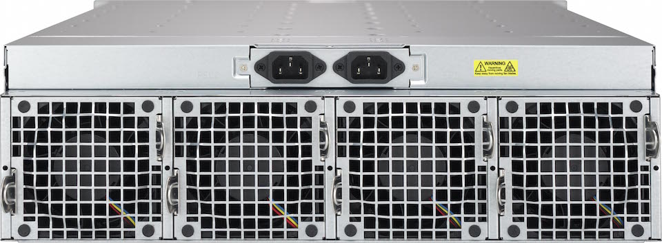 それぞれのノードは筐体をラックに固定したまま、他のノードの電源がONになっている状態でもそのノードのみを引き抜くことが可能です。各ノードはBaseboard Management Controller(BMC)チップによる遠隔マネジメントに対応します。またそのための集約されたBMC専用LANポートを搭載しています。このポートを経由して全てのノードにIPMI経由でのアクセスが可能です。