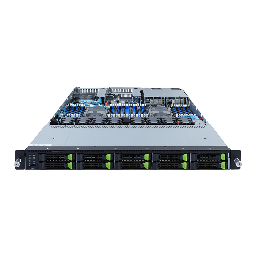 高性能 NVMe SSDドライブを最大10台搭載可能。最新のIntel社製サーバ向けCPUを搭載したデュアルソケットラックマウントサーバ。